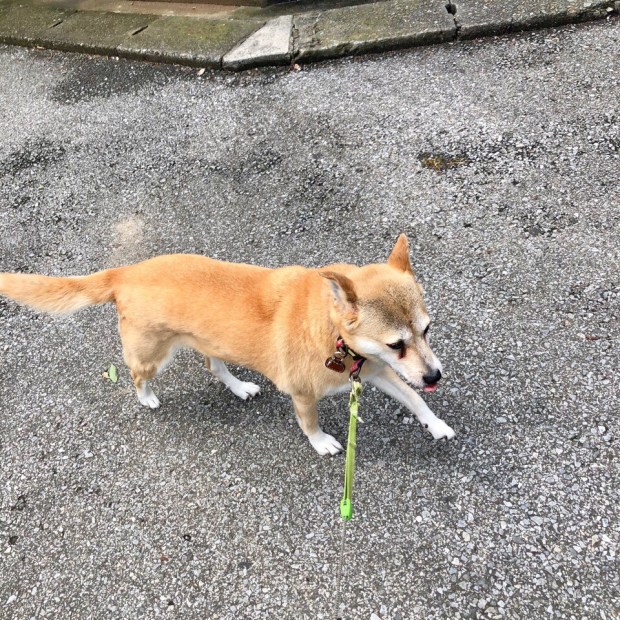 運び屋さんから、電気屋さんへ連絡入れてもらいまして、代わりの冷蔵庫を決めに行く前に シッコタイム🎶