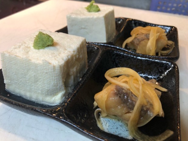 こだわり豆腐のヤッコと鯵の南蛮漬けの お通し。
