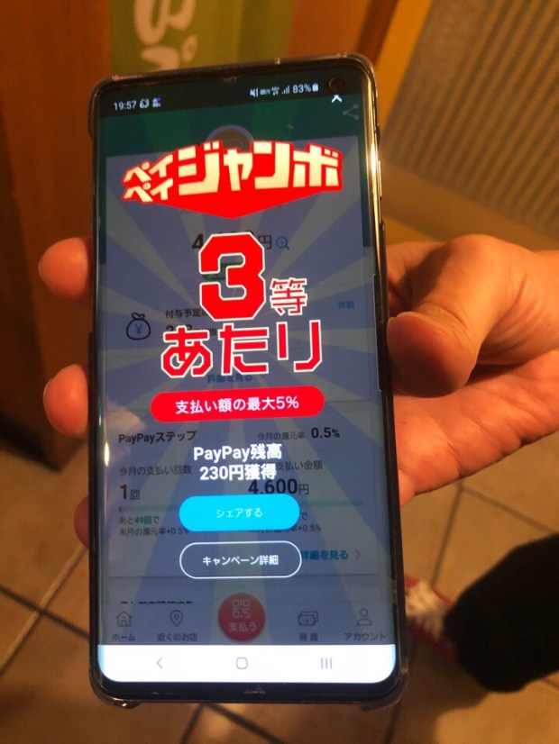 土曜日の男 Tさんが ペイペイ決算で、初の三等賞(*´∀`)♪