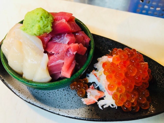 店内飲食の方は、こだわり豆腐のヤッコとマグロとアボカドを海苔で巻きまして(^^)/
