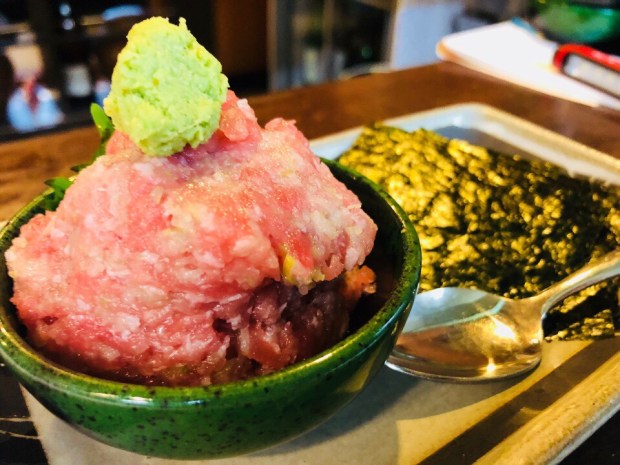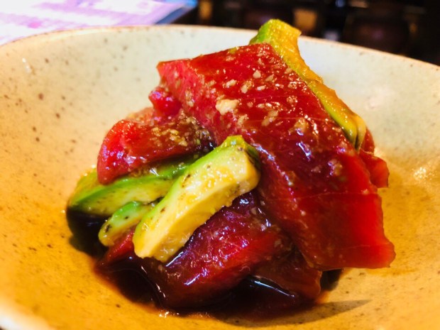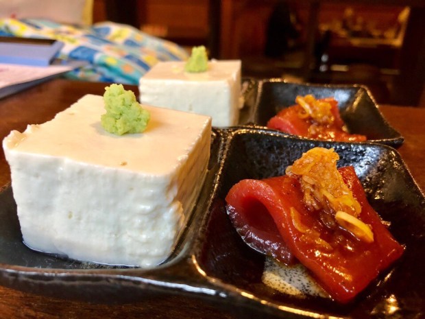 こだわり豆腐のヤッコとマグロユッケの お通し。