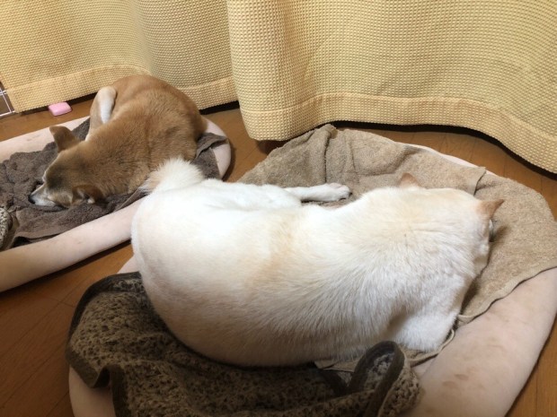 夜も暑いまんまなので、エアコン部屋も 変わらずでして、2人は 快適にすごしておりました♪(๑ᴖ◡ᴖ๑)♪