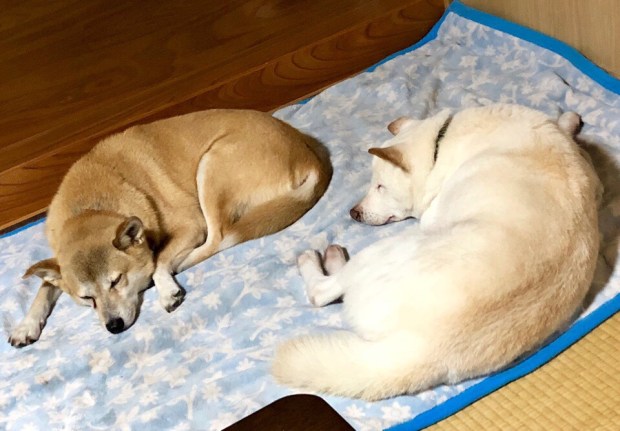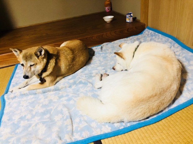 エアコン+扇風機を付けっぱなしで、涼しく休んでもらいます(⌒▽⌒)