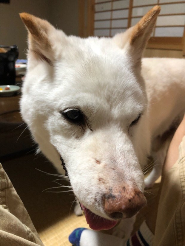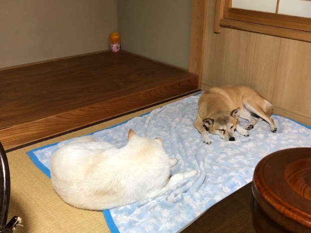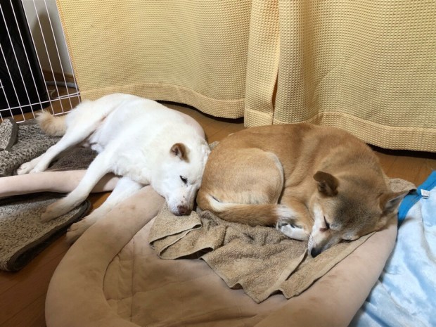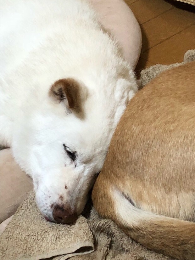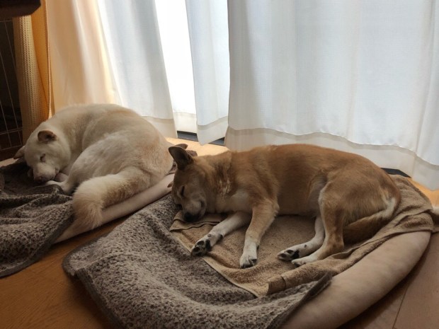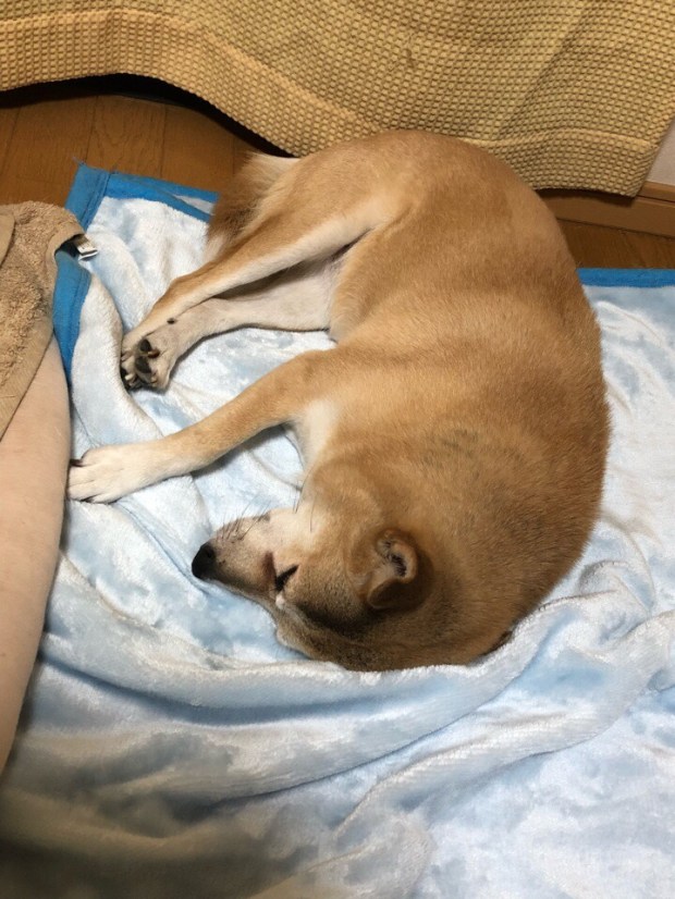 お家もエアコン効かせまして、少し休んでもらってから御飯と思っていましたら、お殿様 爆睡モードzzz…。