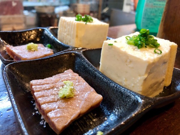 こだわり豆腐のヤッコと中トロ炙りの お通し。