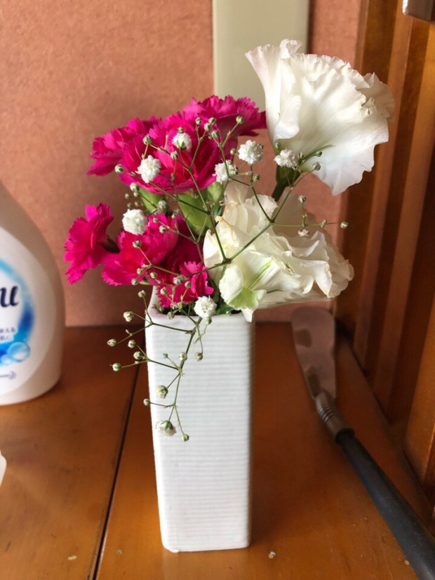 お店に飾りました お花ですが、ちゃんと花瓶を買いましてー。