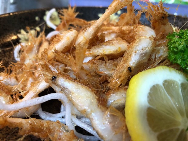 オススメメニューの 白海老の唐揚げ。
