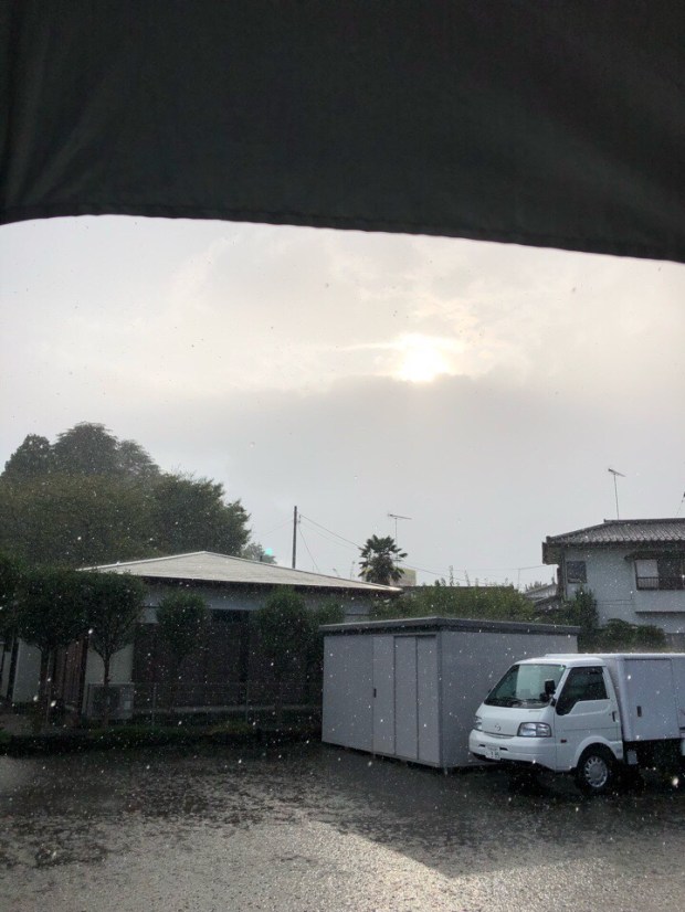 一旦 お家に戻りまして、夕方 お店に戻る時に…雨が降ってきちゃいまして。。。