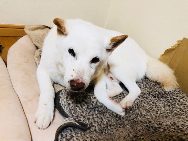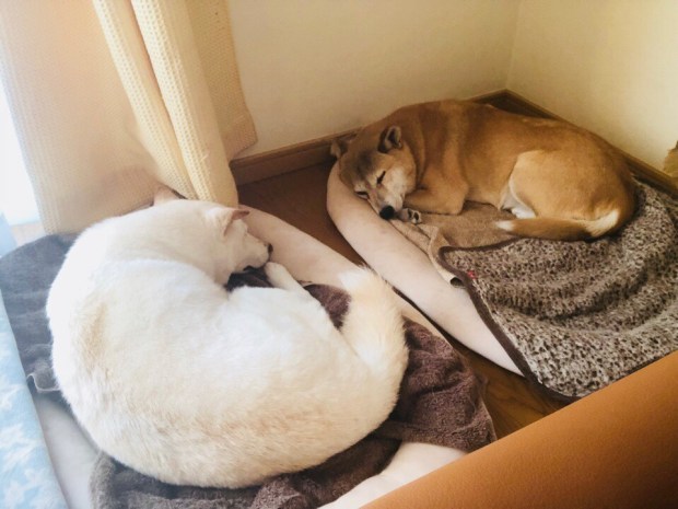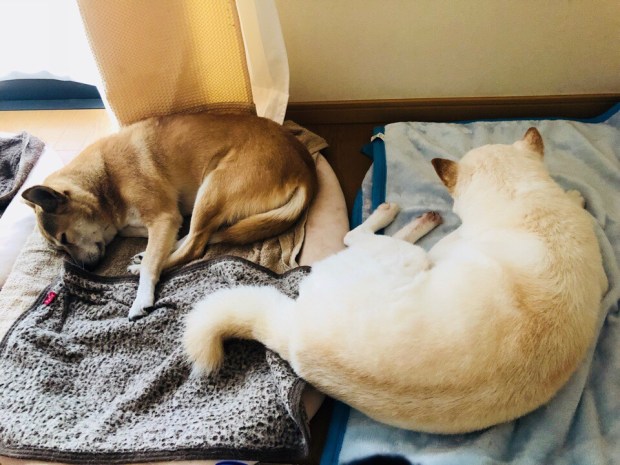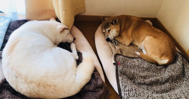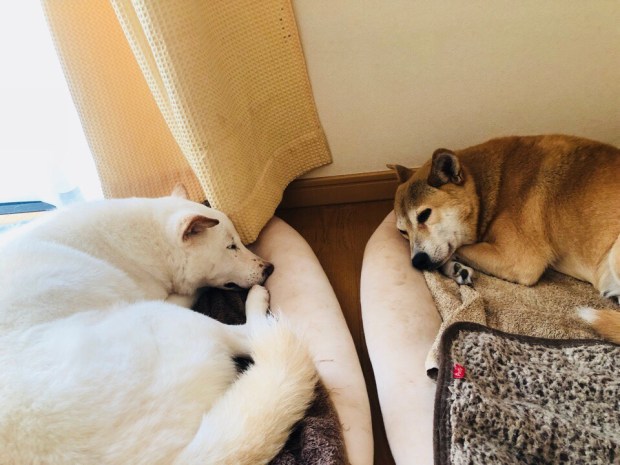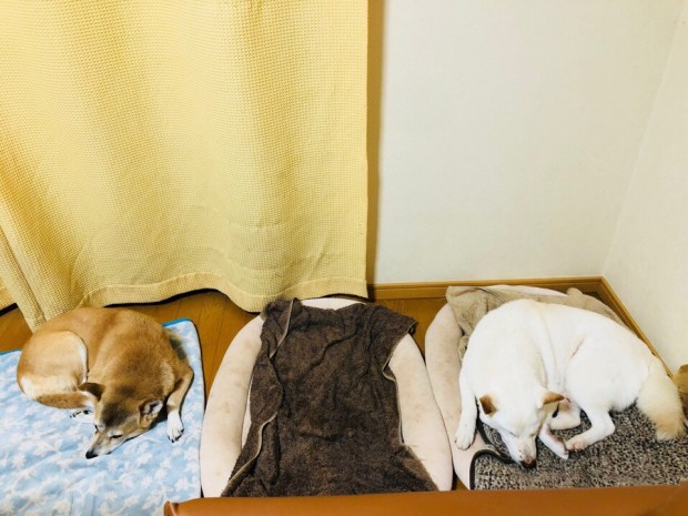 そんな中でも お二人さんは、自分の御飯を食べ終わりましたので、寝る体勢に_:(´ཀ`」 ∠):