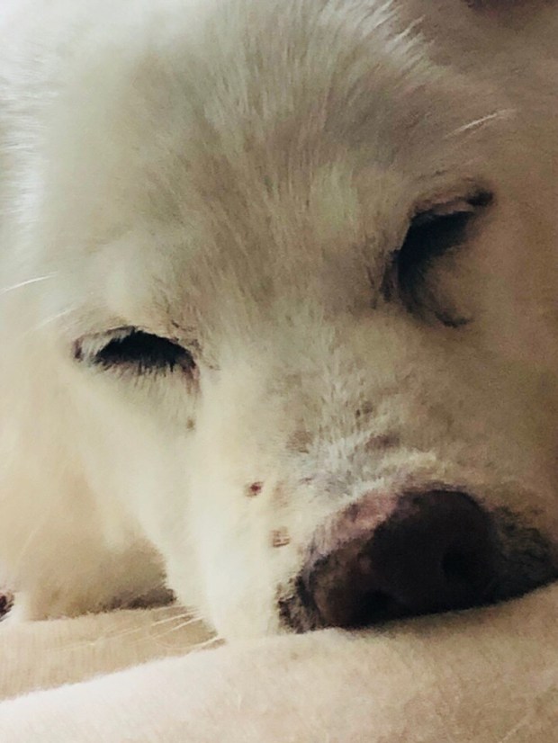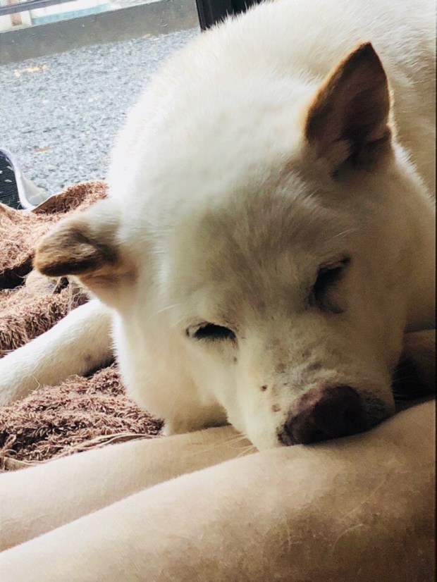 おじーワン、移動したと思いましたら、お鼻をムギューッ(笑)