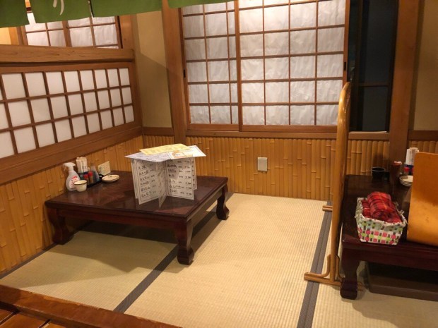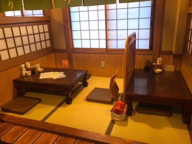 小上がり席の 真ん中の場所ですが、片方しか 使っておりませんので、広く使えるようにー!