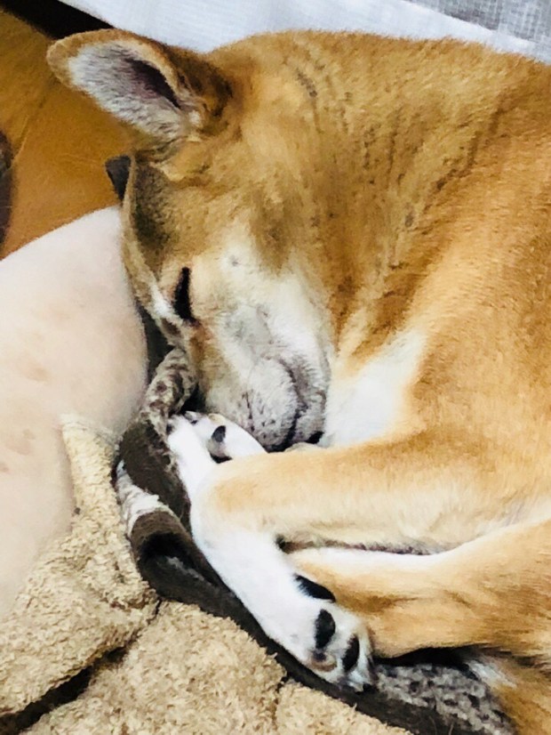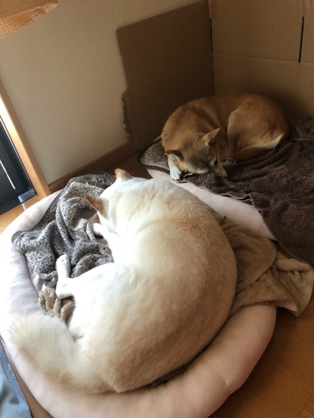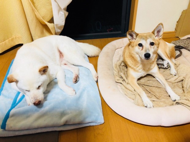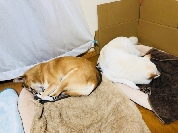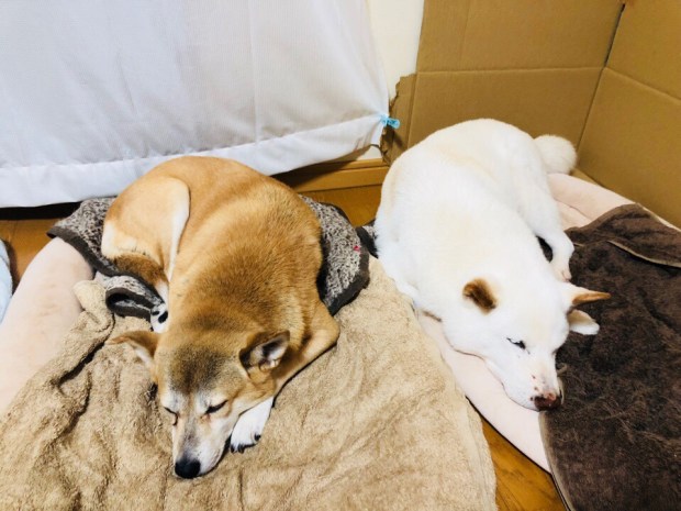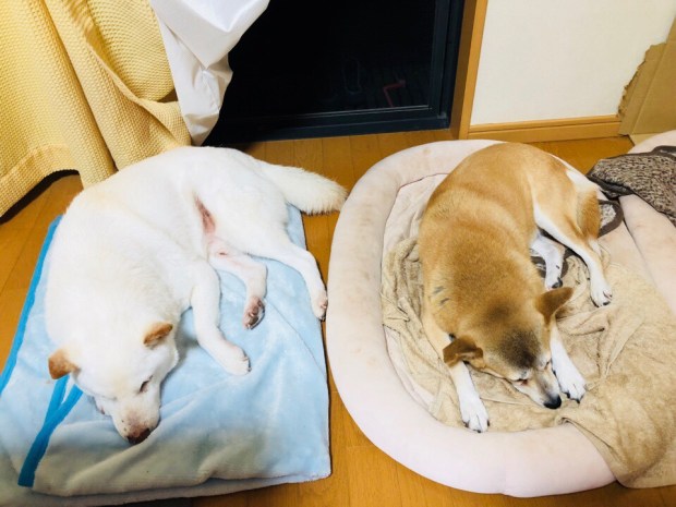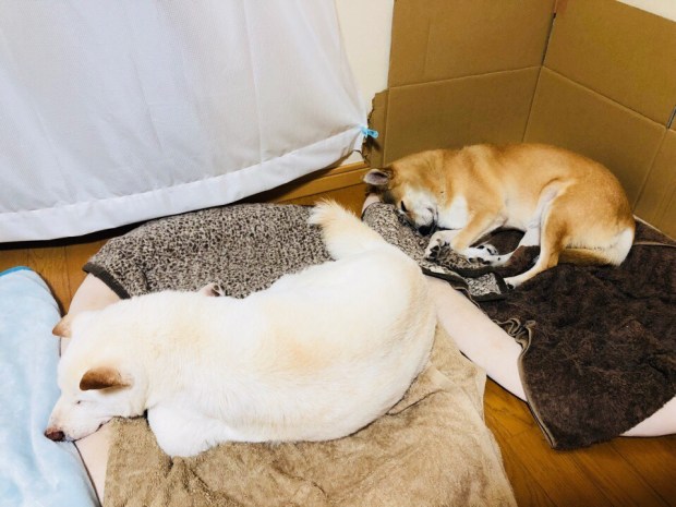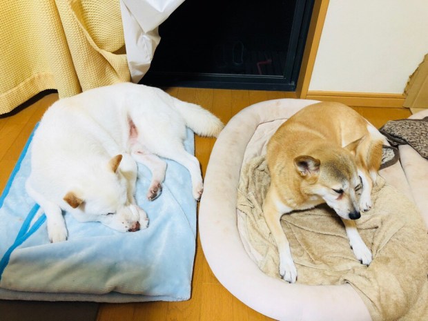 夕食前、一休みしておりましたら、おじーワンが先に寝に入りましてzzz… 。