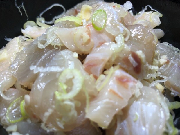 お通しから ジャンジャン 出して行こう作戦で、塩ユッケの仕込み。