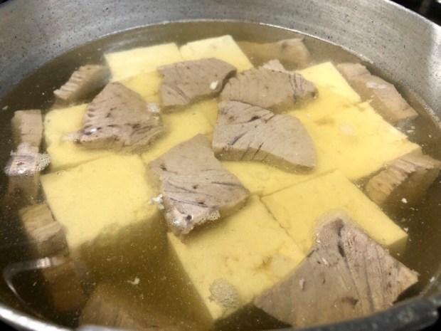 白だしで コトコト、鮪の煮豆腐。