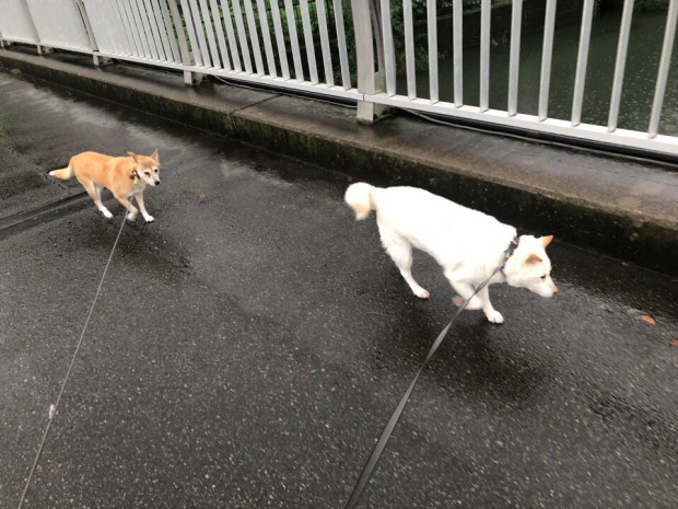 雨の中も シッコに急ぎます、お二人さんU^ェ^U