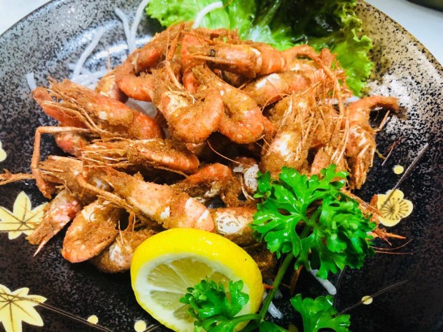 お久しぶりの写真は、白海老の陰にかけれております、川海老の唐揚げ。