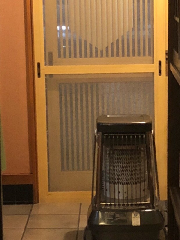 隙間風は 寒いので、ストーブをつけましてー( ´∀`)