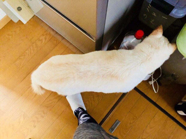 お散歩から 帰って来まして、御飯の準備をしてますと、良くある出来事 。。。