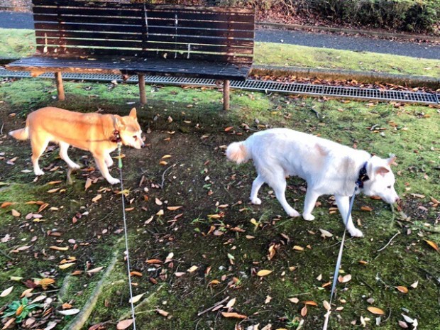 シッコしまして、スピードダウンの おじーワンですが、おじーなりに テクテクと歩いてくれますので、その足並みに ヒバ子さんが合わせてくれます( ^ω^ )