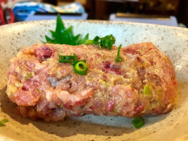 贅沢に お通し用に 中トロを叩きましてー。