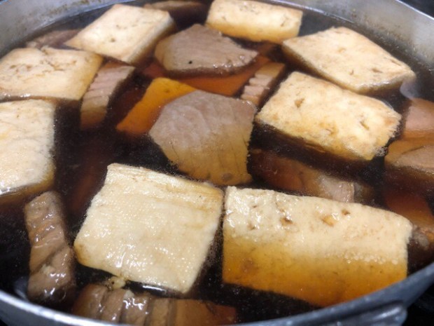 鮪の筋の強い所を使いまして、鮪出汁の煮豆腐をコトコト♪( ´θ`)