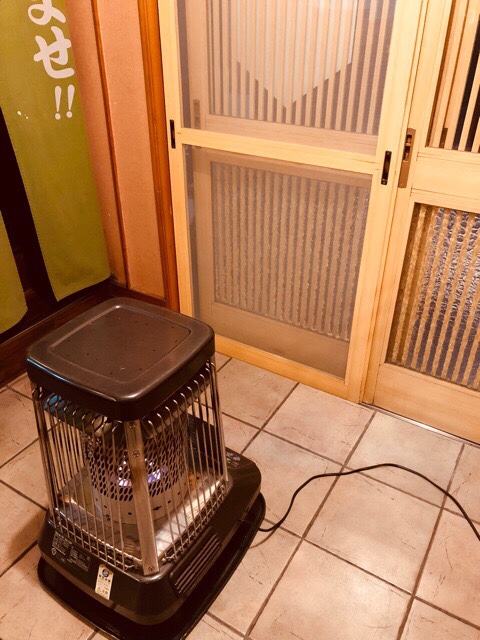 今の時期の営業スタイルですが、ストーブ付けましての、網戸での換気。