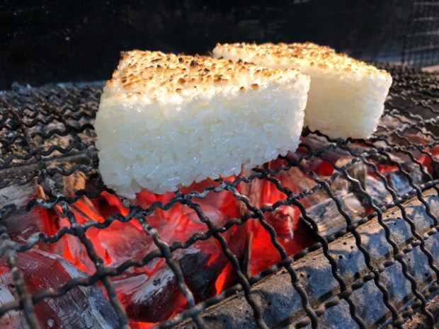 瞬ぴぃの焼きおにぎりは、炭火焼きでーす!!