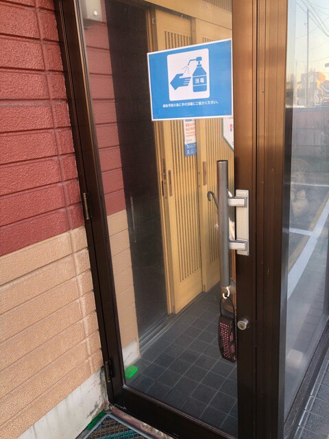 入り口に掲示しております、入店時 消毒の御協力のポップですが、より分かりやすいように、青い 色付きの物に変えてみました。