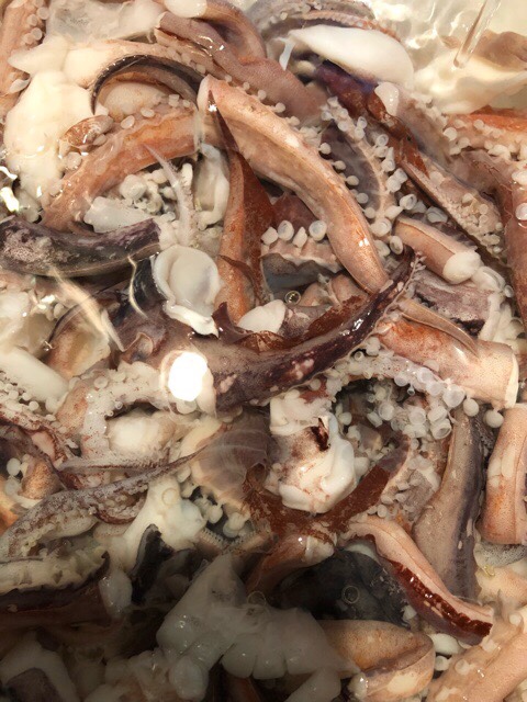 唐揚げ用の イカゲソの掃除٩( ᐛ )و