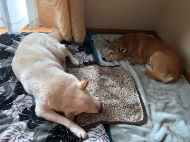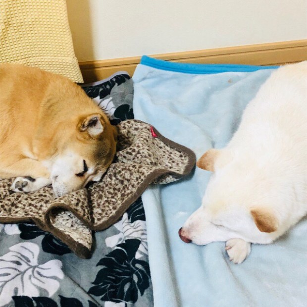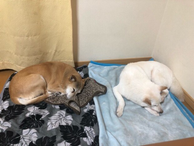 お尻も お尻をくっ付けて、仲良く寝ておりました♪(๑ᴖ◡ᴖ๑)♪