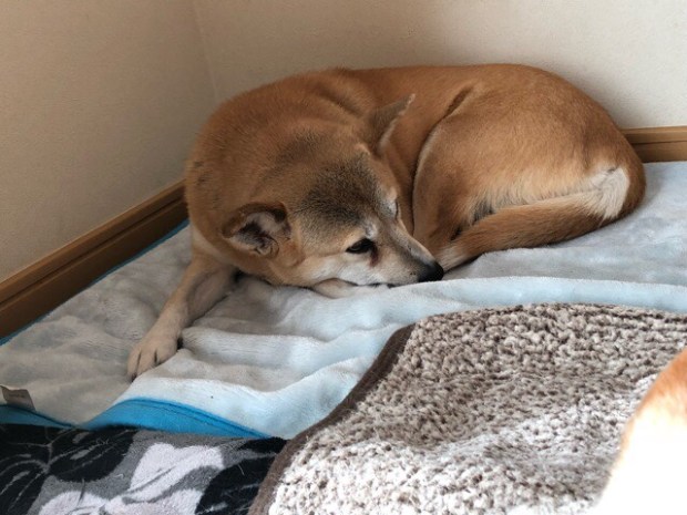朝御飯食べまして、朝の お昼寝タイム♪( ´θ`)ノ