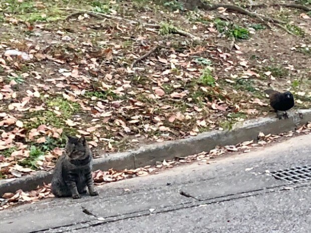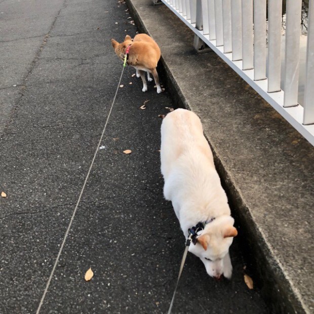 お散歩へ出ますと、ニャンコ様とカー子さんが並んで出迎えてくれめした(⌒▽⌒)