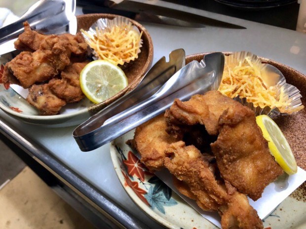 揚げ物は、骨付きモモ肉の唐揚げ。