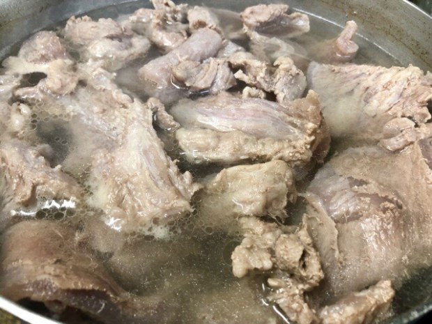 良い牛すじが入りましたので、一度湯こぼしましてー!