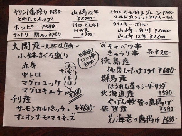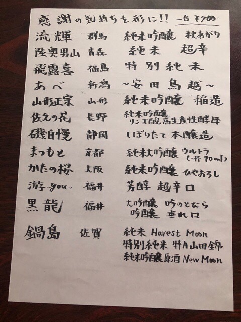 完売となりました物と、新入荷の物で、日本酒のメニューも 書き直しましてー。