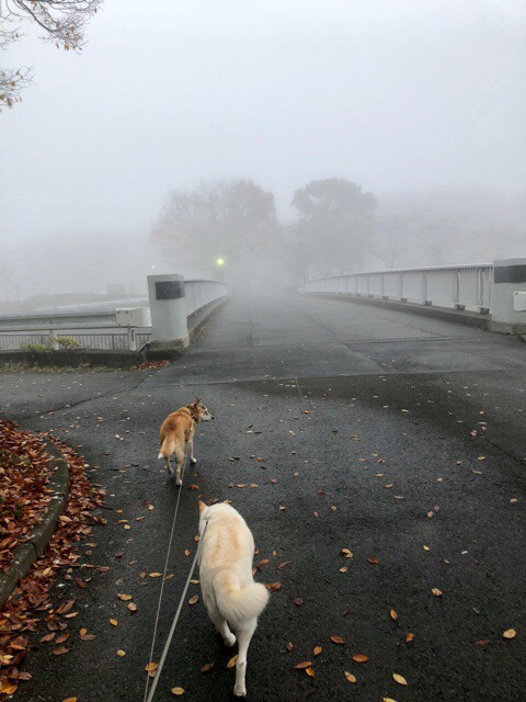 朝、お散歩へ出ますと…霧 キリ きり(・・;)