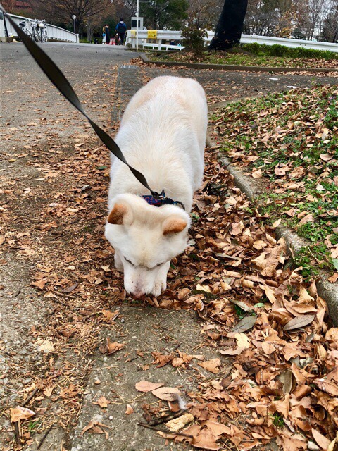 ヒバ子、枯葉の絨毯で 気持ち良さそうでございました(≧∀≦)