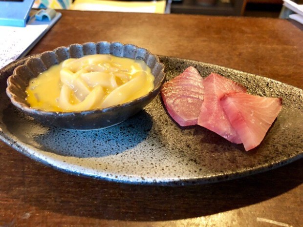せっかくでございましたので、自家製 塩辛と メニューに まだ出しておりませんでした、鰤の塩〆をサービスさせて頂きました( ̄^ ̄)ゞ