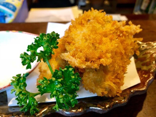 お塩で食べるカキフライ。