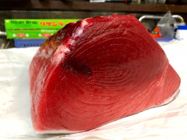 朝一、豊洲市場の仲買いさんより 御連絡頂きまして、買い付けました カナダ産 天然本鮪。