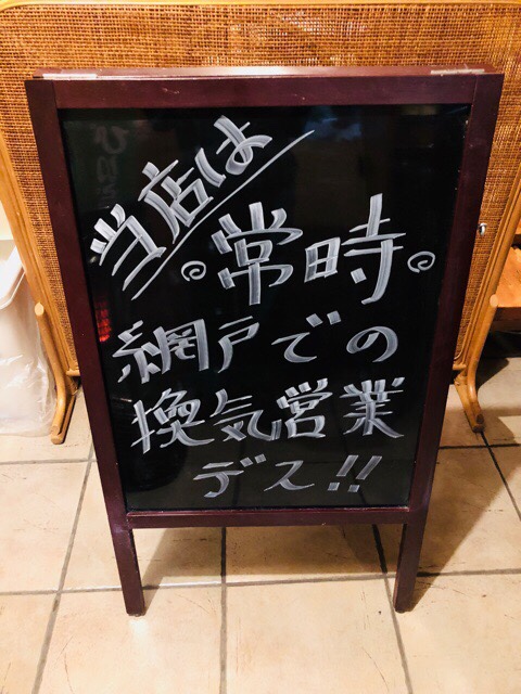 それでも やれる事は しっかりと‼️で、お外向け用の黒板にも しっかりと換気している事をアピールしまして( ̄^ ̄)ゞ