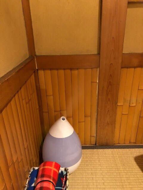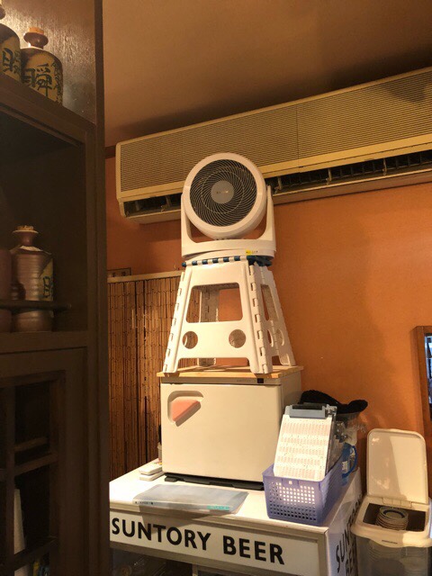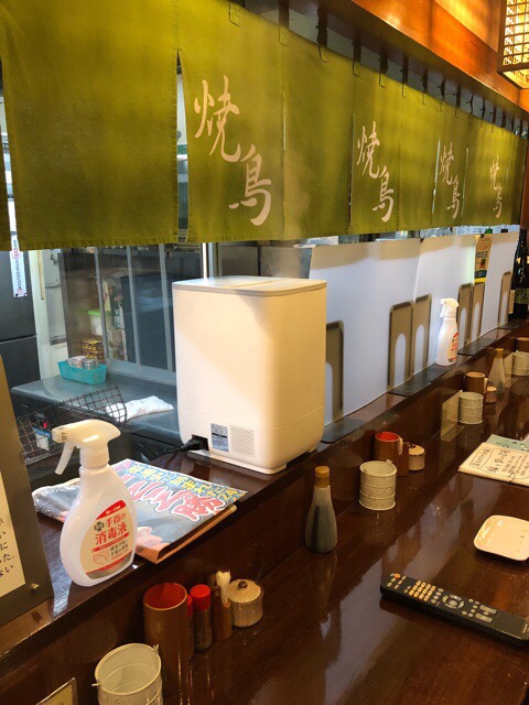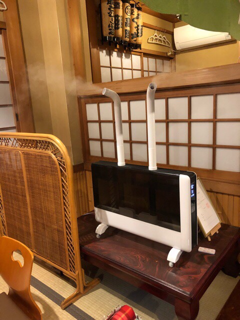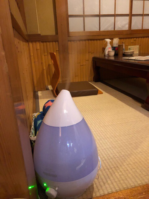 新兵器の場所に置いてありました 加湿器は、カウンター席を一つ潰しまして、設置してみました。