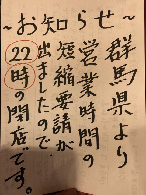 さて、日が変わりまして 本日より時短営業要請でございます。