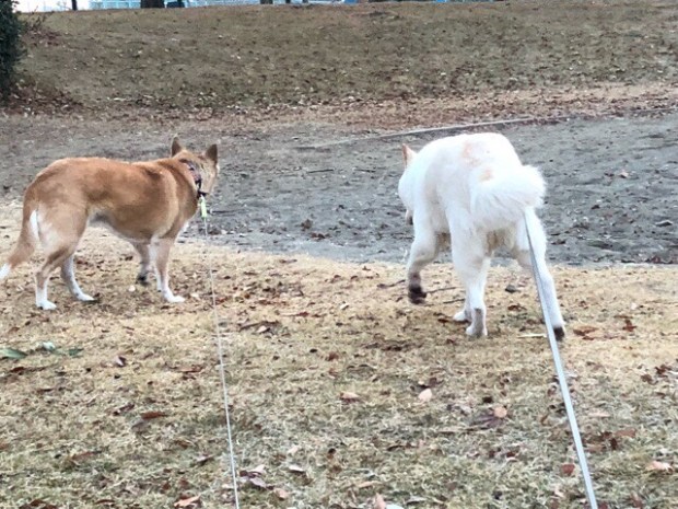 ヒバ子さん、シッコしたくて 動いたのに、おじーワン 追いかけて(^◇^;)