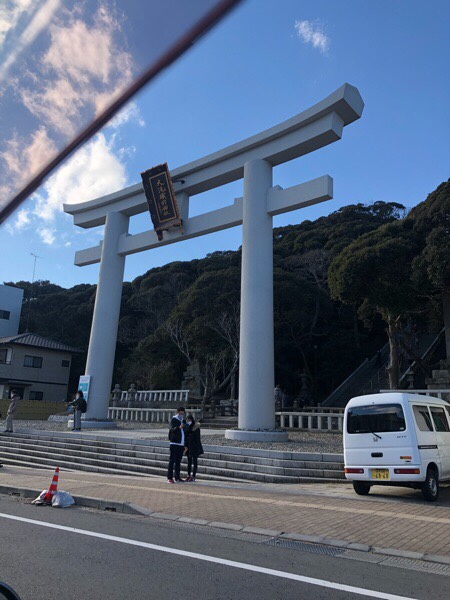 磯前神社へ行ってみましたが、予想通り 混んでおりましたので、車の中から お辞儀だけ。