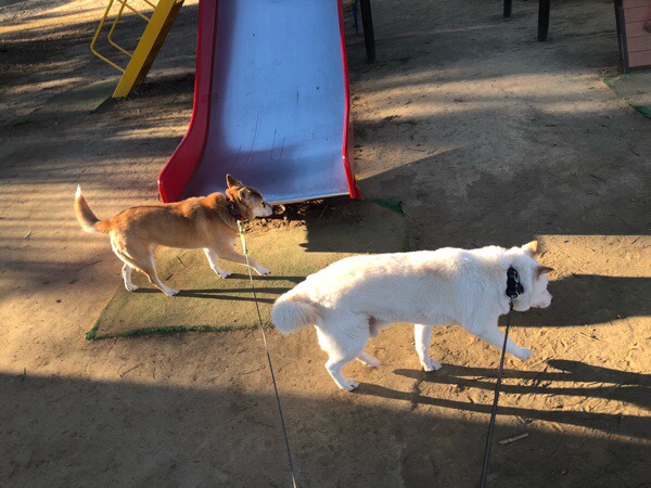 お家に戻りますと、2人が ソワソワ動き出しましたので、お散歩へ(^^)v