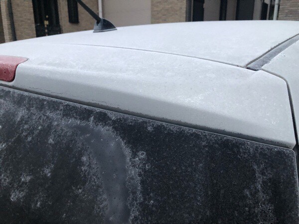 お散歩で お外に出ますと、クルマが凍ってました。。。