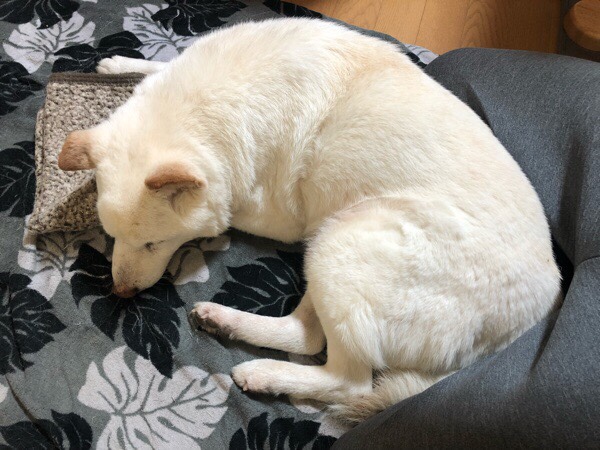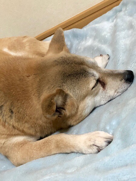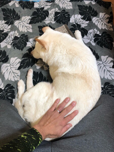 お電話終わって、おじーワンを寝かしつけ∩^ω^∩
