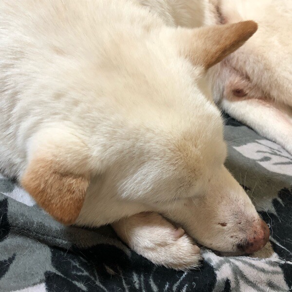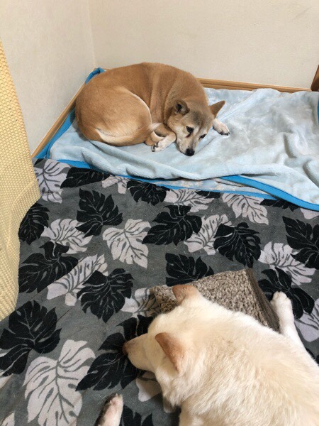 ヒバ子さんも おじーワンを気にしながらの 寝んね 。