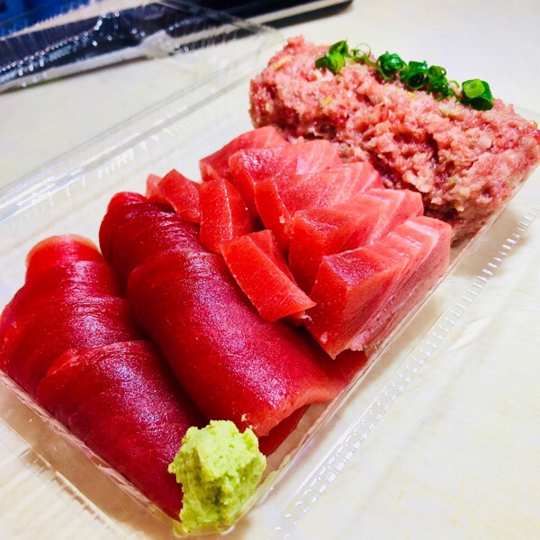 まぐろ盛りの中トロ、炙り、ネギトロバージョン。